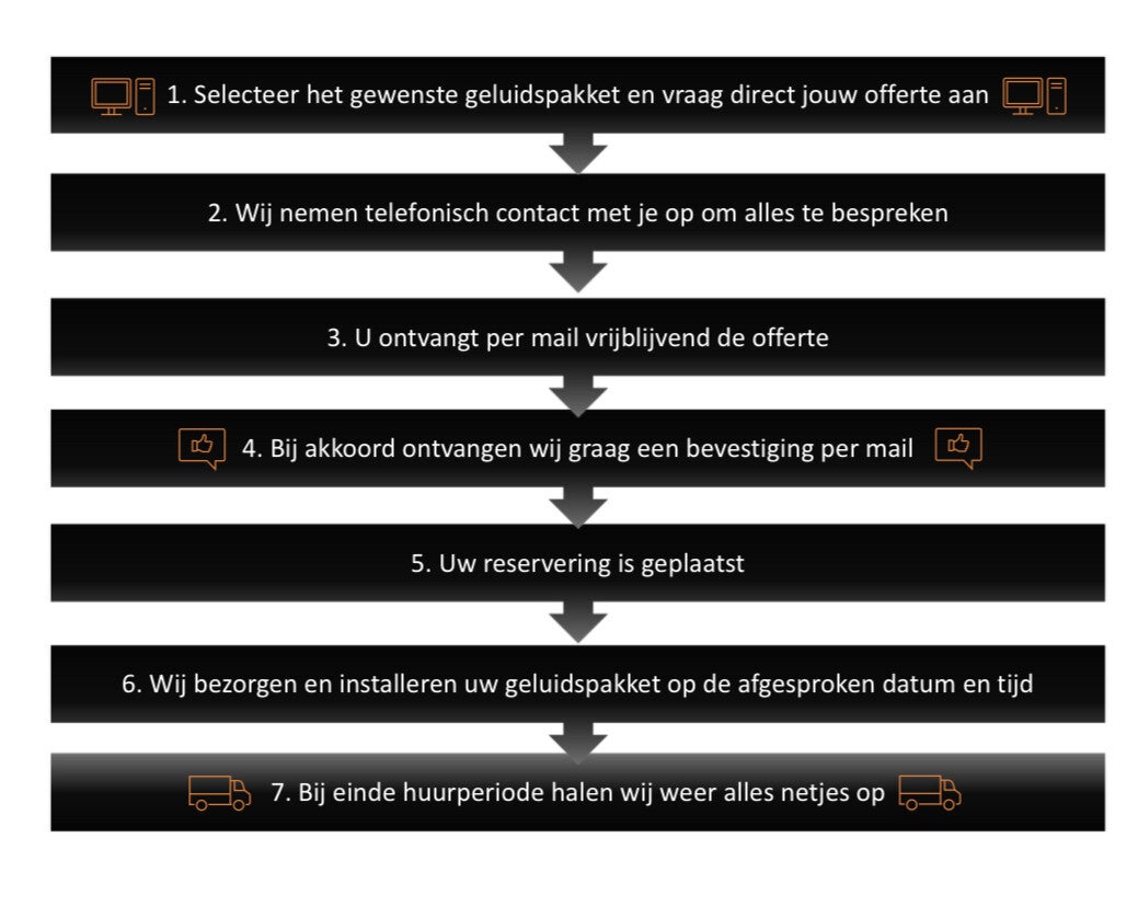 Wij adviseren u graag goed voordat u een speaker set bij ons huurt aan de hand van het aantal personen , de locatie en de akoestiek van de locatie. Soms moet de aangevraagde set iets worden aangevuld met een hogere geluidssterkte. Echter komt het ook geregeld voor dat wij een set adviseren met een lagere geluidssterkte. Wij zijn een betrokken partij die meedenkt binnen de kaders die u stelt zoals een bepaald budget bijvoorbeeld.